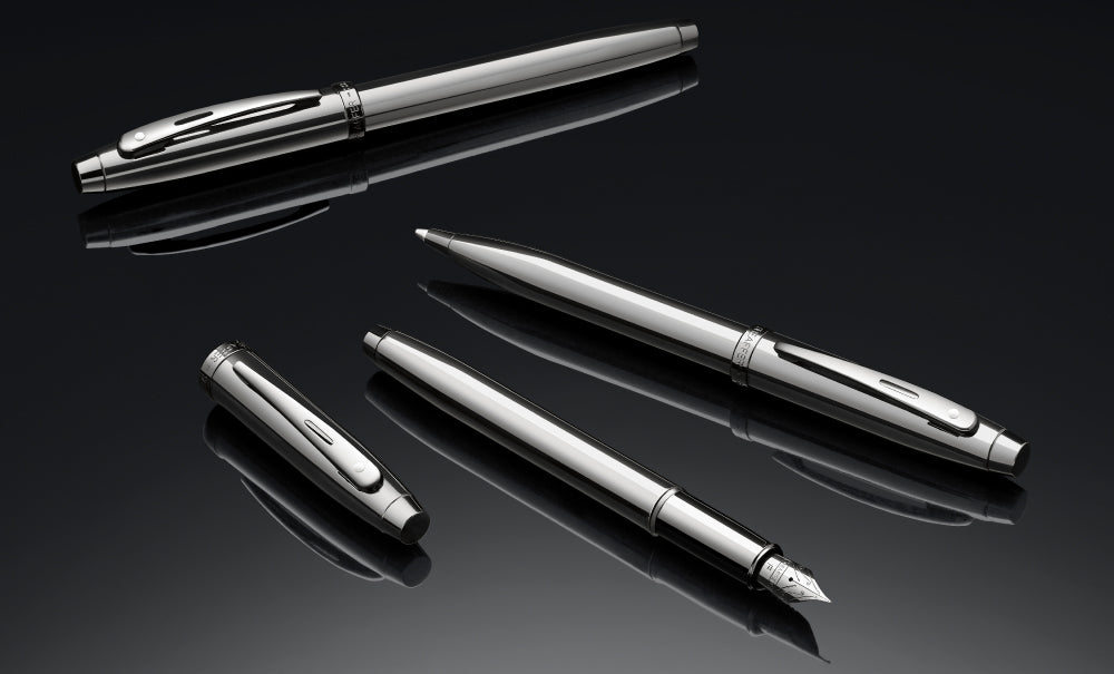 Sheaffer 100 Bright Chrome Fountain Pen With Gold Trims - Fine