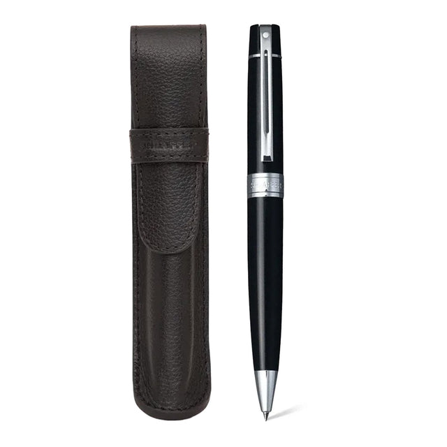 Sheaffer Gift Set Glossy Black 300 9312 Ballpoint Pen With Chrome Trim And Pen Pouch